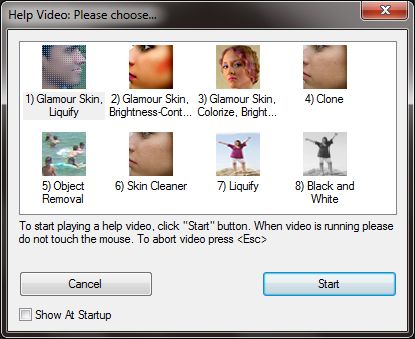 Màn hình đầu tiên sẽ hiện bảng trợ giúp. Nó gồm rất nhiều thao tác mà bạn cần như: làm mịn da, xóa đối tượng, làm sáng, Chỉnh eo thon...Bạn cần trợ giúp cái gì chỉ việc click vào hành động tương ứng là nó sẽ thao tác trực tiếp cho bạn xem. nếu bạn không muốn xem mà mún thực hiện lun chỉ việc nhấn ESC :)